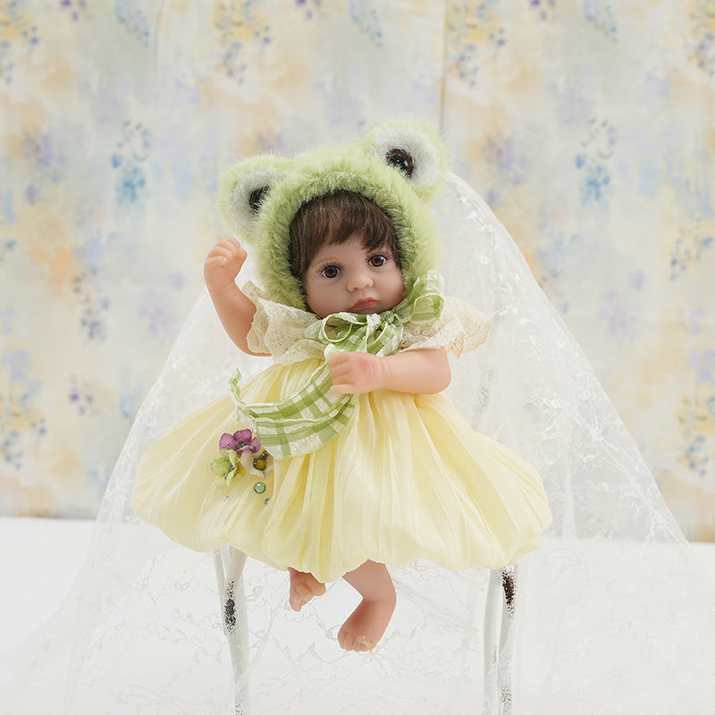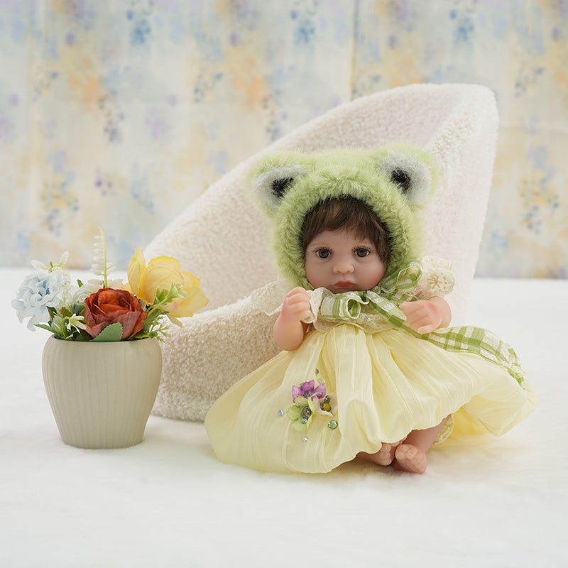 30cm/12inch Little Infant Girl Beautifully Detailed Silicone Reborn Baby Doll with Brown hair
