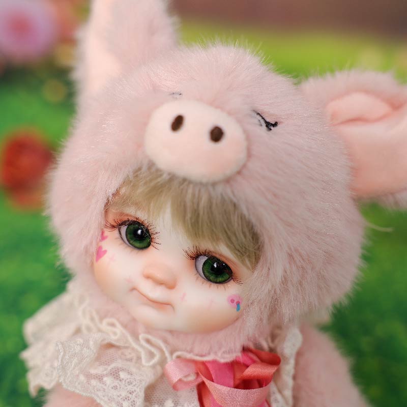 20cm/8Inch High-Quality porcelain Cheeks Plush Pink Pig Hat Doll