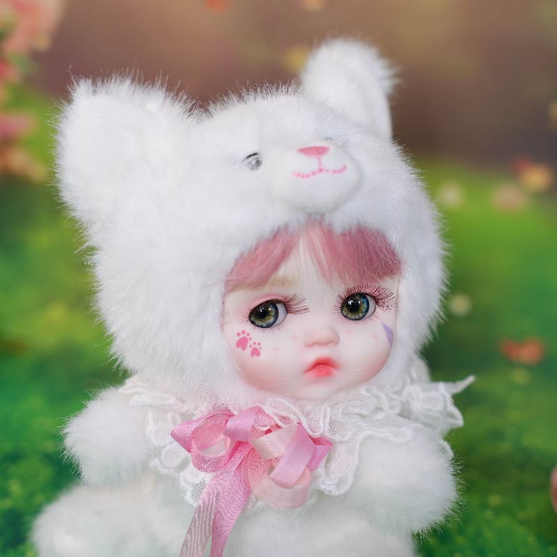 20cm/8Inch High-Quality porcelain Cheeks Plush White Fox Hat Doll.