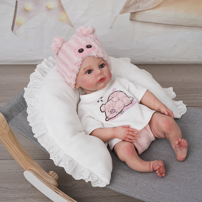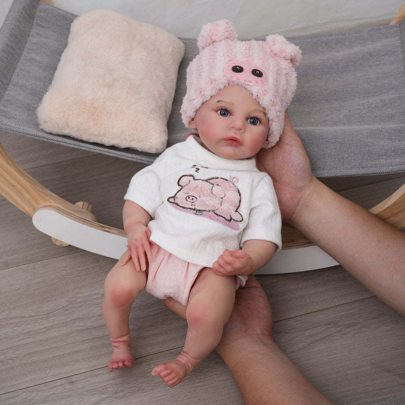 This is a 16-inch full-body silicone reborn baby girl designed with care to capture the delicate charm of a real newborn. Crafted from solid platinum silicone and featuring hand-rooted hair and soft hand-painted detailing, the baby doll is ideal for those looking for a lifelike, comforting baby doll for collection, care, training, or quiet companionship.