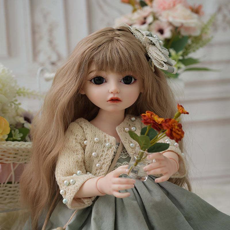 -Artisan Details: Hand-painted makeup cured with low-temperature baking for lasting vibrancy. Glass eyes (14mm) showcase amber-toned irises for a gentle gaze.