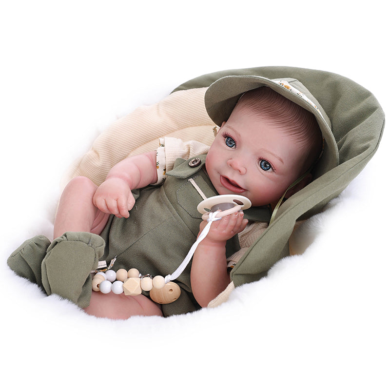 This exquisitely crafted 20-inch reborn baby doll is made from firm, hard vinyl. With hand-painted hair, mesmerizing blue acrylic eyes, and lifelike vinyl skin featuring subtle veins and nails, the baby doll offers tender realism and inviting companionship—ideal for display, gentle interaction, or quiet moments of emotional connection.