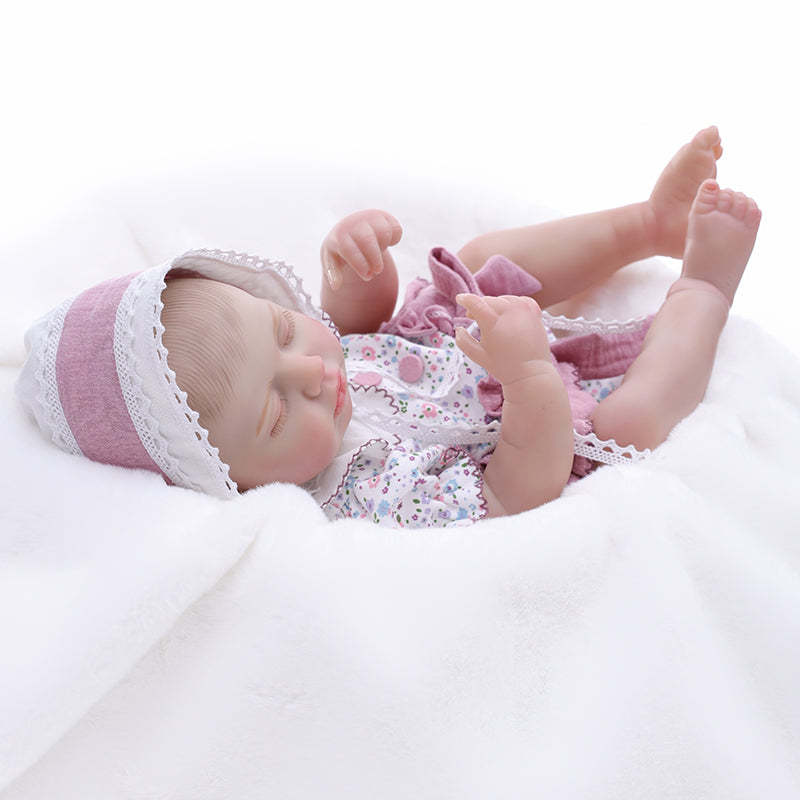 This baby doll's serene expression features closed eyes, slightly parted lips, and naturally flushed cheeks—each detail enhancing her calm, dreaming appearance.