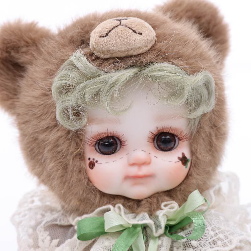 Take a look at our premium porcelain-cheek plush bear-hat doll! Measuring approximately 10–15 cm in height, the entire head is made of high-quality fired porcelain with an exquisitely crafted facial design. The plush hat and clothing are personally designed by our designers, giving the doll a high-end texture and a delightful feel.
