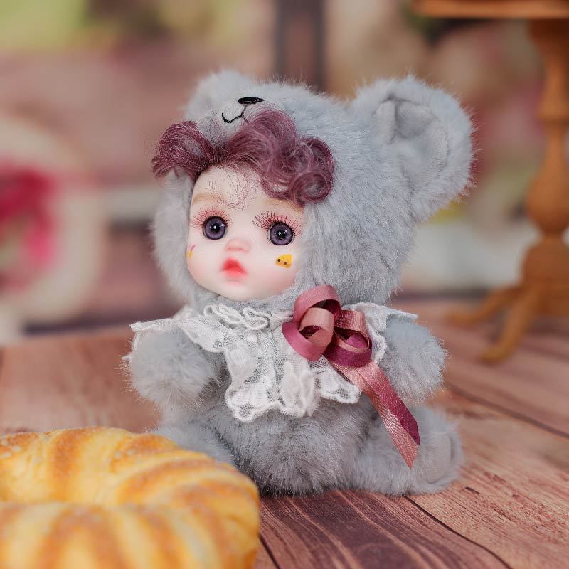 Take a look at our premium porcelain-cheek plush koala-hat doll! Measuring approximately 10–15 cm in height, the entire head is made of high-quality fired porcelain with an exquisitely crafted facial design. The plush hat and clothing are personally designed by our designers, giving the doll a high-end texture and a delightful feel.