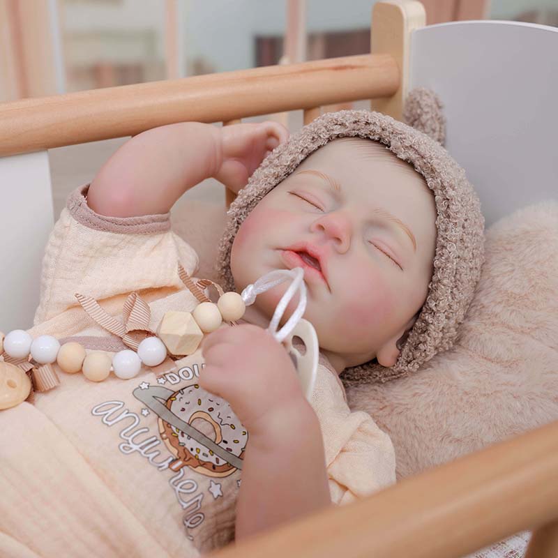 This is an exquisitely crafted 20-inch reborn baby doll made from high-quality full vinyl. With her eyes peacefully closed and a soft expression, she embodies the quiet stillness of a newborn wrapped in sleep. This baby doll is more than a display piece—she’s designed to be held, cherished, and give her caregiver a gentle sense of presence.
