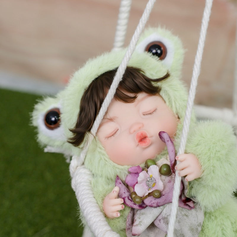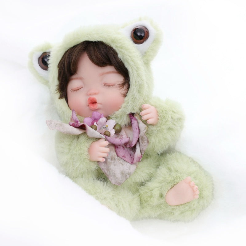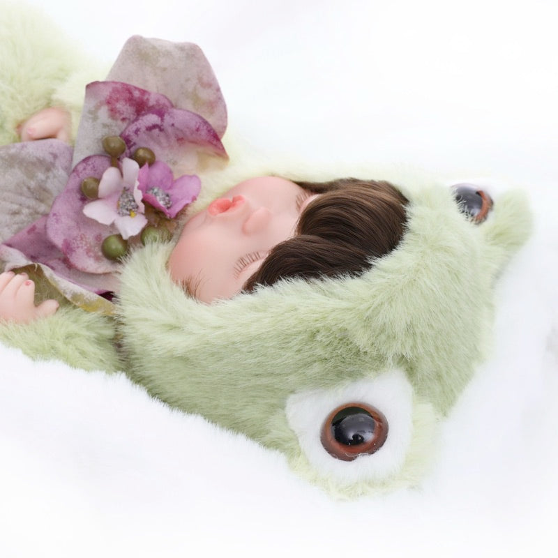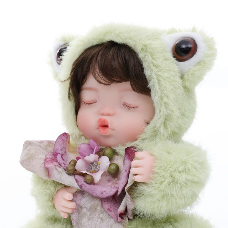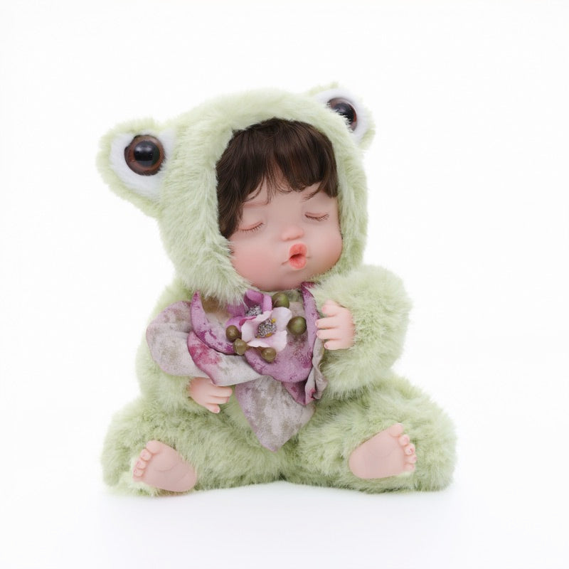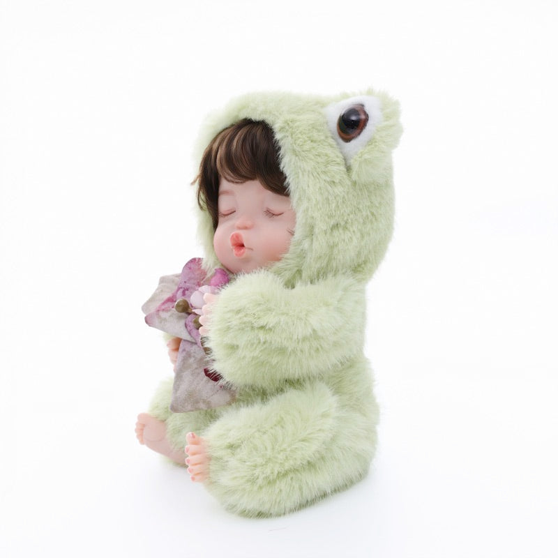 This Frog Baby Doll joins three other animal friends—Rabbit, Sheep, and Fox—to form a complete miniature menagerie. Each character wears its theme-specific faux-fur costume, stitched details, and a tiny accessory, making the set perfect for display in any nursery, study, or collector’s cabinet.
